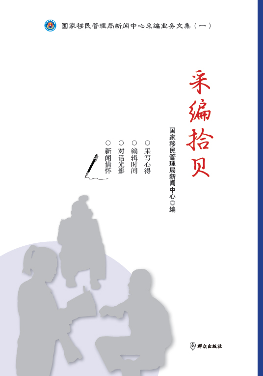 这本《采编拾贝》,就是从“一报一刊”创刊以来采编人员所写的众多新闻论文、心得、随笔中挑选出来的。收进这个选本中的文章,也许不是大家笔谈、不那么深入系统,却易学易懂、务实管用。研读这些文章,不仅是在集中梳理移民管理领域新闻研究的发展脉络,也是在回顾总结移民管理新闻人采编之路上的精彩片段;品读这些文章,既能感受到作者和编者与时携行的铿锵步伐,也能感悟到他们开拓创新的心智心语,既获知识,又得启迪。相信对有志于从事移民管理领域新闻宣传工作的朋友来说,不啻为拓视野、长本事、强素质的良师益友。当然,也真诚地期待同仁方家指教指正。