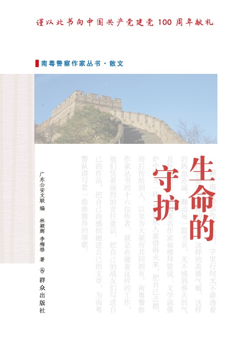 《生命的守护》是一部散文集,由上下编两部分组成。上编《生命的裂缝》收录了公安作家林颖辉的散文作品,主要包括《裂缝》《无形的警服》《警嫂的午后时光》《英雄的声音》等作品。下编《警队那些事儿》收录了公安作家李梅格的散文作品,主要包括《女警出更》《警队往事》《有这么一群人》《三朵花》等作品。作品紧扣时代脉搏,具有强烈的公安特色,作者创作出深情动人的公安散文作品,像阳光般温暖,带给读者美的享受与心灵的震撼,充满时代正能量。