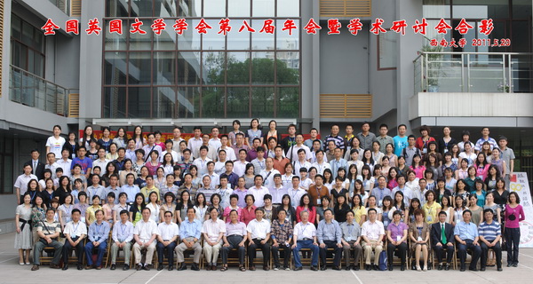 由全国英国文学学会主办,西南大学外国语学院、西南大学莎士比亚研究所、重庆市莎士比亚研究会承办的全国英国文学学会第八届年会暨学术研讨会于2011年5月19-23日在西南大学召开。本届年会由商务印书馆、《英语世界》杂志社、河南人民出版社、上海外语教育出版社共同协办。商务印书馆、群众出版社等8家出版社,《当代外国文学》、《外国语》等期刊代表出席了会议。商务印书馆等出版社向大会捐赠了书籍。大会收到论文243篇。此次参会代表共计约200人,分别来自20多个省、自治区、直辖市约120家高校、科研机构和出版社。来自中国社会科学院、北京大学、复旦大学、南京大学、南开大学、厦门大学、武汉大学、山东大学、四川大学、河南大学、中国人民大学、北京外国语大学、上海外国语大学、西安外国语大学、重庆大学、北京师范大学、华东师范大学、华中师范大学、南京师范大学、湖南师范大学、东道主西南大学以及远至祖国边陲的西藏大学、石河子大学的学者、专家,云集国家森林公园缙云山麓、嘉陵江畔的风光旖旎的西南大学,就“二十世纪中国的英国文学:回顾与反思”这个主题,进行了多方位、多角度、富有新意和启发的交流和探讨。