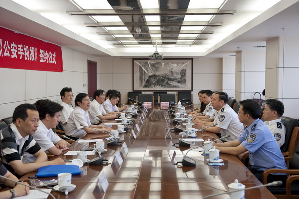 6月21日,中国人民公安出版社社长战俊、副社长刘灿、副总编辑阎新瑞和《公安手机报》的相关同志与新华社新闻信息主任张晓华、副主任苏会志、候丽华及新华社负责编辑《公安手机报》内容的部分编辑进行了座谈。战俊和张晓华等双方领导畅谈了《公安手机报》友好合作和发展前景。战俊说,最近,国务委员、公安部长孟建柱同志和其他公安部领导高度重视互联网、手机报等新兴媒体在公安工作中的作用。多次强调,要充分运用新媒体工具,搭建警民联系的新平台,积极探索新形势下群众工作新路子。《公安手机报》的诞生,可以说是恰逢其时,她将有效地拓展公安文化传播的新阵地、搭建警察公共关系的新平台、丰富警民沟通的新渠道。新华社信息中心与中国人民公安出版社在手机报方面的合作是强强联合、优势互补的合作。张晓华表示要大力支持《公安手机报》的各项工作,双方共同努力把《公安手机报》办成深受200万人民警察欢迎的新媒体。