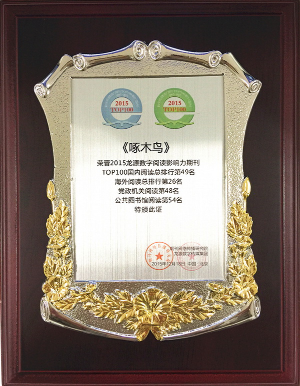 日前,在宁波召开的“2015TOP100全民阅读城市排行暨TOP100数字阅读影响力期刊排行发布盛典”上,《啄木鸟》入选“2015年数字阅读影响力百强期刊”。在参与龙源期刊网“数字阅读影响力”排名的全国4200多家期刊中,《啄木鸟》取得了TOP100国内阅读总排行第49名,海外阅读总排行第29名的佳绩,再度赢得“网民心中好期刊”的美誉。