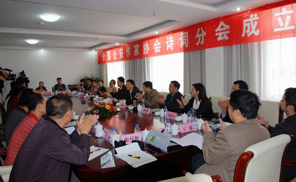 10月30日,全国公安作家协会诗词分会成立大会在山东省枣庄市公安局民警训练基地召开。公安部群众出版社社长、全国公安作家协会副主席杨锦,全国公安文联秘书长、全国公安作家协会副主席张策,公安部宣传局文化处处长孙洁,全国公安书法家协会副主席兼秘书长方玉杰,山东省公安厅宣传处副处长时耀华、宣传处副处长李新宇,枣庄市市长助理、市公安局党委书记、局长万庆阳,市公安局党委副书记、政委李文周,市委宣传部副部长、市文联主席胡少华等领导出席会议,来自全国20多个省、市、自治区公安机关的30余名诗词爱好者参加了会议。会议由全国公安文联秘书长张策主持。