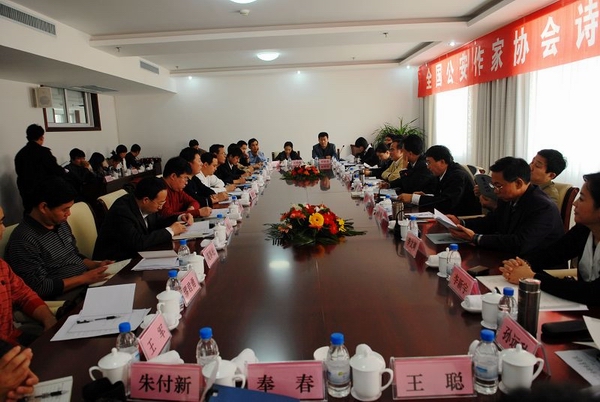 当日下午,全国公安作家协会诗词分会召开了公安诗词研讨会,与会代表各抒己见,热烈发言,切磋交流。湖北省武汉市公安局民警涂运桥在发言中提出要将古典诗词创作和公安工作结合起来,旗帜鲜明的书写公安诗词,形成特色和亮点;陕西省西安市公安局民警骆浩结合自身创作,建议大家可以将诗词创作与音乐结合起来,增加作品的艺术感染力;河北省丰宁县森林公安局副局长张凤桥提出一方面要创作精品,另一方面要适当降低诗词创作的门槛,使更多的公安民警参与到诗词创作中来,逐渐扩大创作队伍,使传统的诗词文化深入民警的大众生活;黑龙江省富裕县公安局政委周德喜结合日常工作,提出了诗词创作要多宣传身边的先进典型,加强理论研究,通过召开研讨会、专题创作、网络交流等形式,进一步推介公安诗词文化;辽宁省公安厅反恐总队副总队长杨明山认为诗词创作立意要好,并先继承后创新,强调要厚积薄发。全国公安文联干部方玉杰建议诗词发展要走艺术化之路,增强作品的生命力;要走群众发展之路,增强队伍的战斗力;要走素质强警之路,增强个人的感染力。